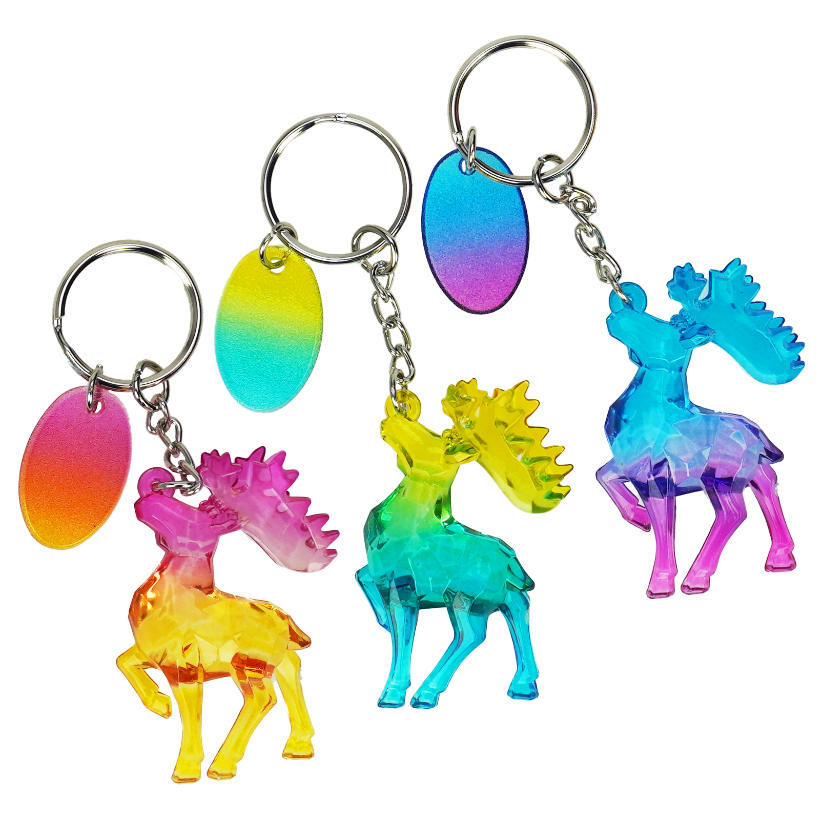 Reindeer Keychain Glossy Rainbow 12 pcs assortment