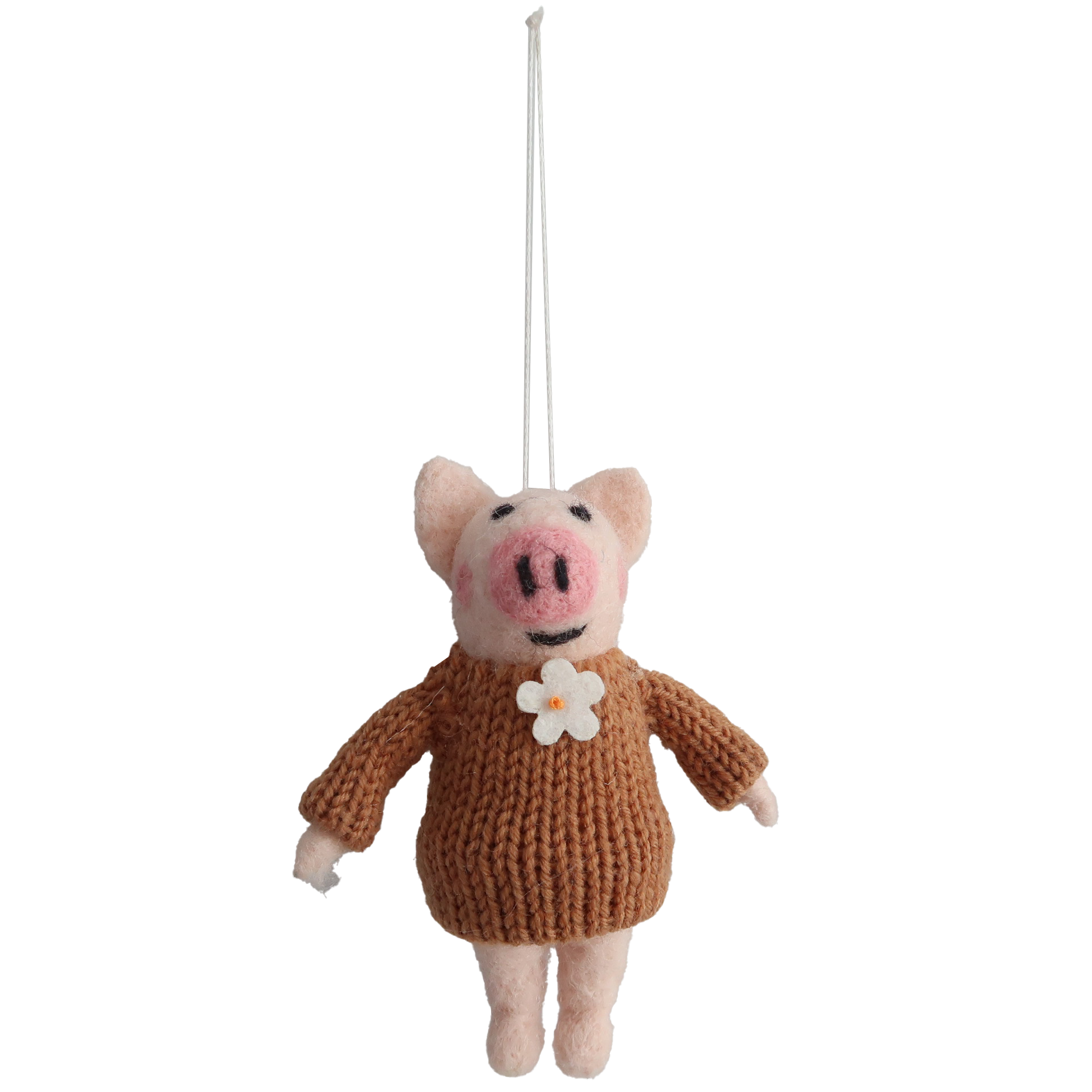 Ornament Woolen pig with brown sweater 11 cm